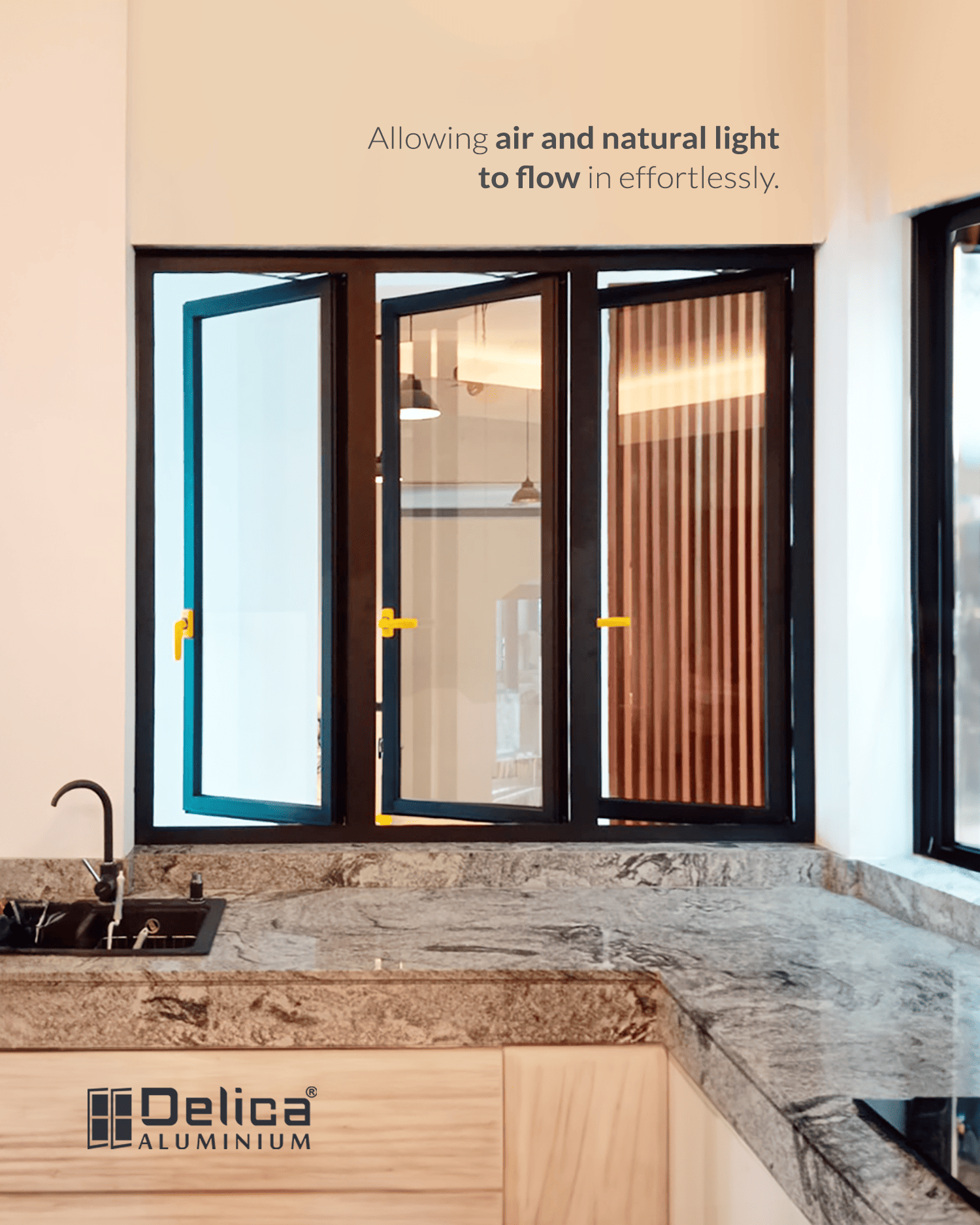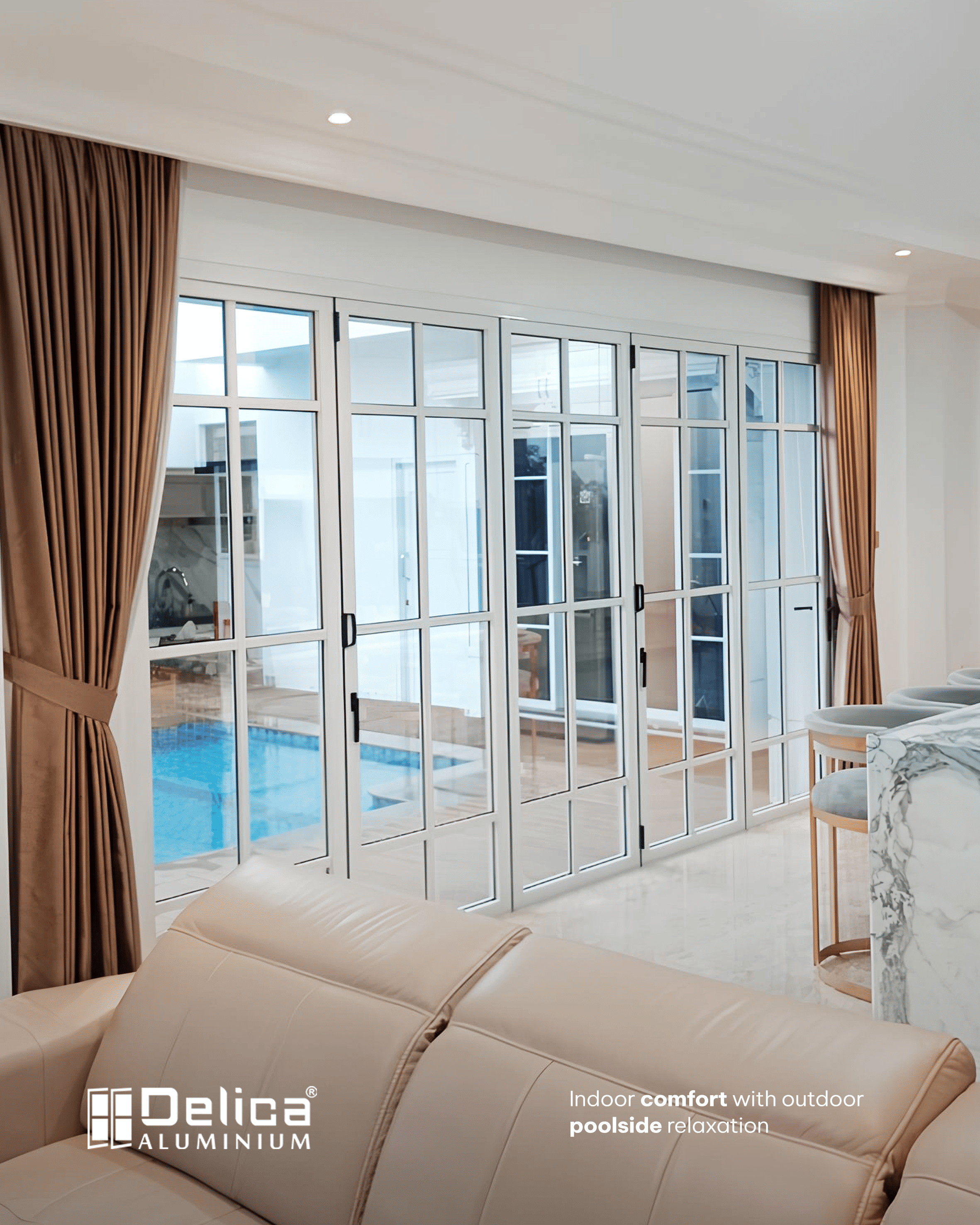 Delica menghadirkan beragam tipe pintu dan jendela aluminium, disesuaikan dengan kebutuhan arsitektural Anda